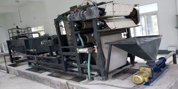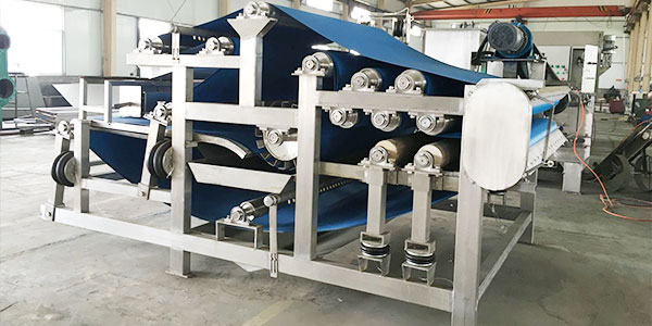 物料經(jīng)過輸送機(jī),輸送到豆渣脫水機(jī)的料斗中,經(jīng)過螺旋布料器均勻地鋪在濾帶上,濾帶隨著設(shè)備的運(yùn)行,限料板把料層高度刮平,使料的厚度完全均勻一致;然后上下兩條完全漲緊的環(huán)狀濾帶夾住料層,在驅(qū)動(dòng)輥帶動(dòng)下,脫水區(qū)內(nèi)的對(duì)輥連續(xù)多次機(jī)械擠壓,將大量的水份壓出。根據(jù)物料的特點(diǎn)自動(dòng)調(diào)節(jié)擠壓力,滿足客戶對(duì)物料水分要求。